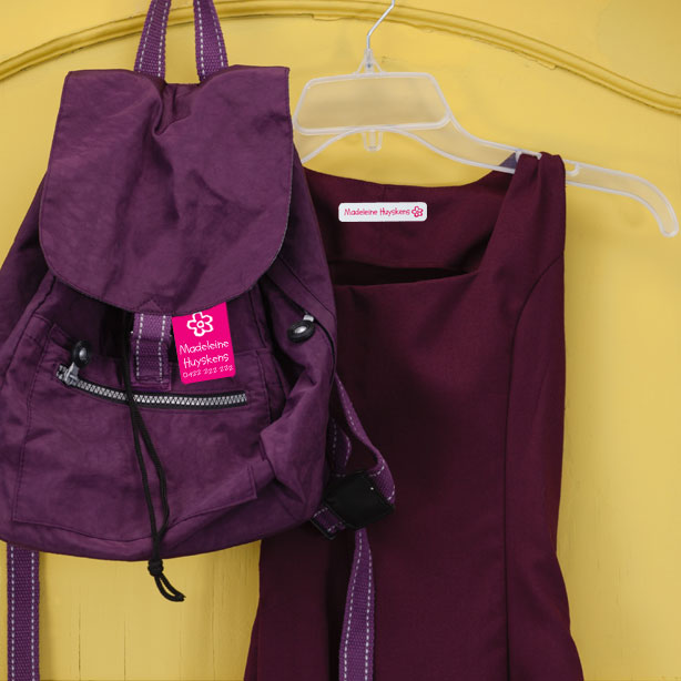 This is a mixed pack of custom clothing tags, that will give you a two alternative sized name labels for different types of clothing. Iron-on labels are ideal for permanent naming in situations when things can get mixed up or lost. Whether for kids at school, in sporting teams or elderly people in aged care, there are always times when clothing can be confused without a name label to identify it.