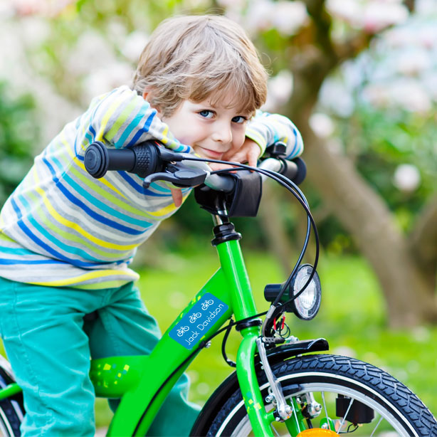 Jumbo stickers can used on anything with a clean, hard, smooth surface such as most plastics, metals, glass and paper. Here we show it on a boy's bike.